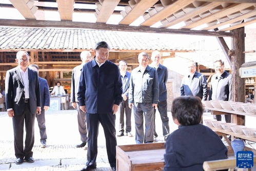 10月10日至13日,中共中央总书记、国家主席、中央军委主席习近平在江西考察。这是11日下午,习近平在上饶市婺源县秋口镇王村石门自然村考察。新华社记者 谢环驰 摄