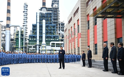 10月10日至13日,中共中央总书记、国家主席、中央军委主席习近平在江西考察。这是10日下午,习近平在中国石化九江分公司考察时,同企业员工亲切交流。新华社记者 谢环驰 摄