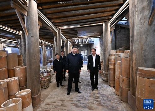 10月10日至13日,中共中央总书记、国家主席、中央军委主席习近平在江西考察。这是11日上午,习近平在景德镇市陶阳里历史文化街区明清窑作群考察。新华社记者 谢环驰 摄