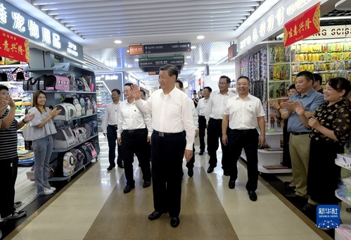 9月20日至21日,中共中央总书记、国家主席、中央军委主席习近平在浙江考察。这是20日上午,习近平在义乌国际商贸城考察时,同商户、小企业主代表亲切交流。新华社记者 李学仁 摄