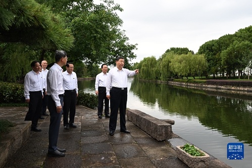 随后,习近平乘车来到位于绍兴的浙东运河文化园考察。他步行察看古运河河道和周边历史文化遗存,详细了解浙东运河发展演变史和当地合理利用水资源、推进大运河保护等情况。习近平强调,大运河是世界上最长的人工运河,是十分宝贵的文化遗产。大运河文化是中国优秀传统文化的重要组成部分,要在保护、传承、利用上下功夫,让古老大运河焕发时代新风貌。