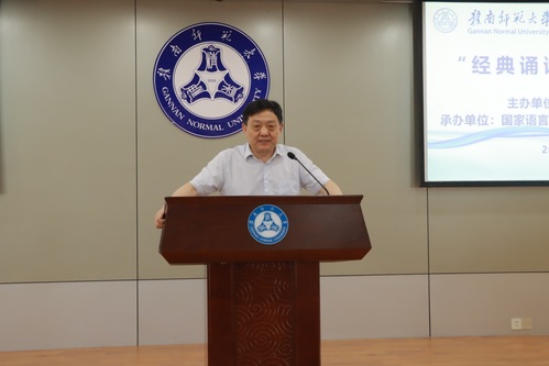 汪立夏在讲话中指出,学校是经典诵读的主阵地,要进一步加强经典诵读师资队伍建设,构建经典诵读课程和教材体系,建设中华经典优质学习资源,打造校园诵读品牌,创新活动形式,突出思想内涵,强化教育功能,丰实文化厚度。汪立夏强调,赣南师范大学地处赣南革命老区,始终坚持“扎根红土、潜心育人”的办学传统,致力推广普及国家通用语言文字,2019年被教育部、国家语委认定为首批“国家语言文字推广基地”,2020年作为江西省唯一单位获批立项国家语言文字推广基地建设重点项目《校园语言文字及经典诵读课程体系建设》,编写出版《经典朗诵教程》,为江西语言文字事业发展作出了积极贡献。希望通过此次“经典诵读”教学研讨会,拓展经典诵读实施途径,创新方式手段,为江西中华经典诵读高质量实施凝聚智慧和力量。