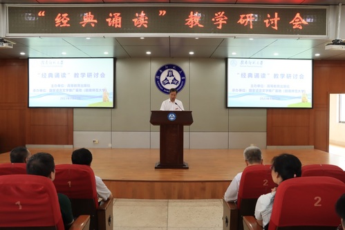 此次研讨会由高等教育出版社主办,我校国家语言文字推广基地承办,共有来自中国传媒大学、新华社、中国教育报等34家单位的语言文字领域相关专家学者,通过主旨演讲、分组讨论等形式分享教学研究成果,交流经典诵读新思路和新方法。