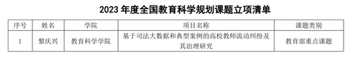 在2023年度全国教育科学规划课题立项名单中,我校获批立项全国教育科学规划课题1项。