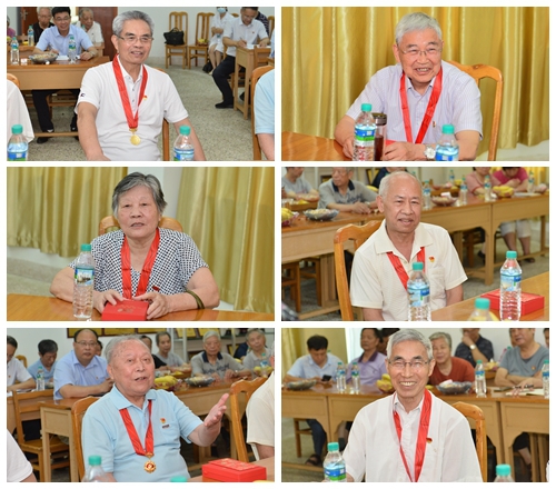 纪念章颁发仪式上,朱小理、邱小云为六位退休老党员一一佩戴“光荣在党50年”纪念章,送上慰问金并与他们合影留念。