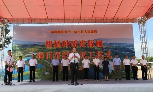 仪式上,朱小理代表学校致辞,对柑橘种质资源圃项目顺利签约和开工建设表示祝贺,向长期以来关心、支持和帮助我校事业发展的信丰县委县政府和有关乡镇表示感谢。他说,学校期待与县委、县政府进一步深化校地合作,发挥双方优势,凝聚强大合力,齐心协力加快项目建设进度,尽早实现柑橘资源的有效开发利用和科技成果转化落地。坚信在双方共同努力下,一定能将项目打造成为校地合作的典型案例,实现互利共赢、携手发展,共同为赣州革命老区高质量发展示范区建设贡献力量,以实际行动助力“六个江西”建设。