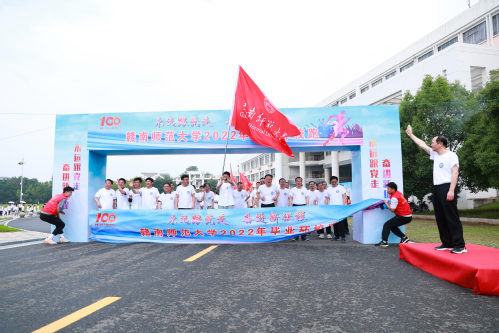 5月28日,“情系赣师大 建功新时代”2022年毕业环校跑活动在青春广场举行起跑仪式。校长朱小理出席并为毕业生领跑团授旗、发令,副校长刘民出席并致辞。学校党委(校长)办公室、学工处、保卫处、团委等部门负责同志及各教学学院有关负责同志,毕业班辅导员、班主任和2022届毕业生代表参加活动。