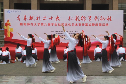 长期以来,我校学生社团坚持党的领导,打造出一系列有特色学生社团品牌活动,丰富了学生第二课堂,学生社团文化呈现蓬勃发展之势,在近年各级各类评选表彰及赛事活动中屡获佳绩,先后获得全国“百优创业社团”“赣南采茶戏传承标兵”等荣誉称号,获全国艺术设计大赛二等奖、“西门子杯”智能制造挑战赛二等奖等。