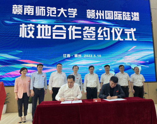 5月10日,学校与赣州国际陆港举行校地合作签约仪式。校党委副书记、校长朱小理,南康区委书记何善锦出席并致辞。校党委委员、纪委书记、省监委驻校监察专员于保春及党政办公室、外国语学院、国际教育学院等部门负责同志,赣州国际陆港党工委副书记、管委会主任罗永锋,党工委副书记蔡湖南,党工委委员、管委会副主任谢小龙,党工委委员、纪工委书记、监察组组长黄小南,党工委委员、管委会副主任黄万林等出席。签约仪式由罗永锋主持。