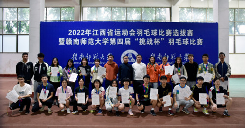 近日,由校团委主办,体院学院团委承办的2022年江西省运动会羽毛球选拔赛暨赣南师范大学第四届“挑战杯”羽毛球赛在体育学院羽毛球馆圆满闭幕,校团委、体育学院团委负责人以及体育学院专业教师参加了颁奖仪式。