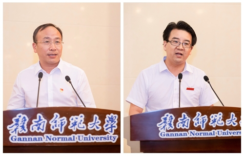 体育学院2020届体育教育专业本科生龙渊祯的父亲龙建新先生作为家长代表,向顺利毕业的2020届毕业生表示祝贺,并向培育优秀人才的赣南师范大学和领导老师致以崇高的敬意。音乐学院肖艳平老师作为教师代表,向毕业生送上祝福,希望毕业生们坚持梦想,用奋斗书写青春华章。