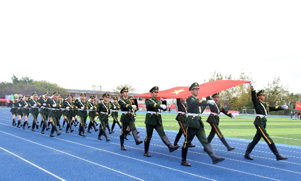 伴随着激昂的运动员进行曲,在国旗护卫队方阵的引领下,校旗、礼仪方阵、彩旗方阵、16个教学学院方阵队依次经过主席台。同学们精神抖擞,口号响亮,步伐整齐。部分方阵队还进行了个性化的形象展示,巧妙的造型、精彩的表演,彰显出青春的激情与活力。