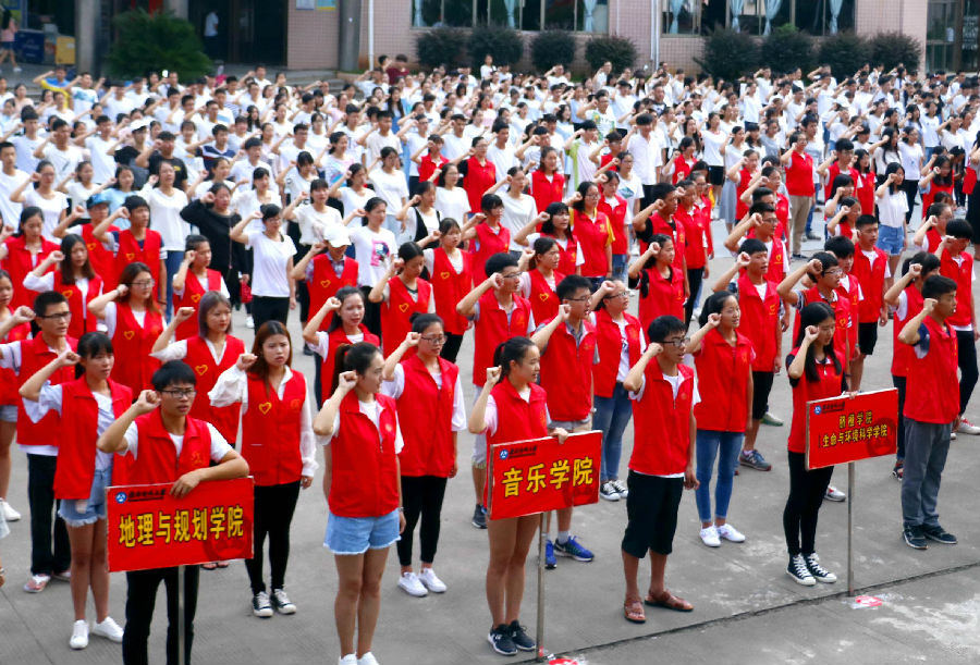 仪式上,即将出征的15支省级和校级重点团队接受授旗;校学工处长魏美春介绍此次暑期“三下乡”社会实践活动的基本情况。“三下乡”服务团队指导老师代表、新闻与传播学院刘川老师,大学生志愿者代表、脐橙学院2015级生物科学本科班宫锦同学分别发言。参加仪式的全体大学生志愿者举行了集体宣誓。