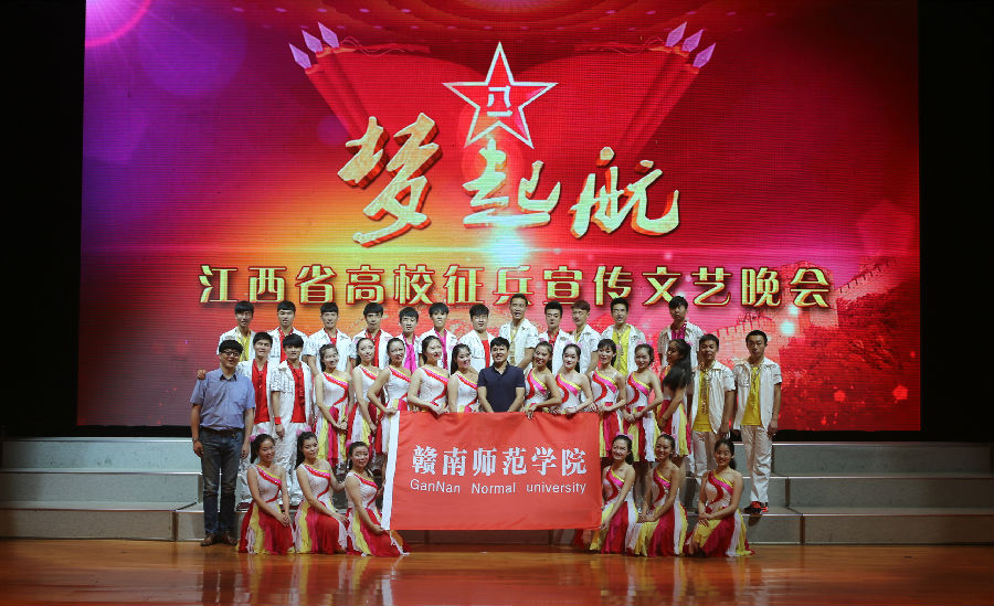 我校选送的节目《站在长征起点》作为“序”开场,精彩表演得到导演组及现场观众的一致好评,并受邀代表江西高校大学生在晚会中给部分正在服役的大学生官兵献花。