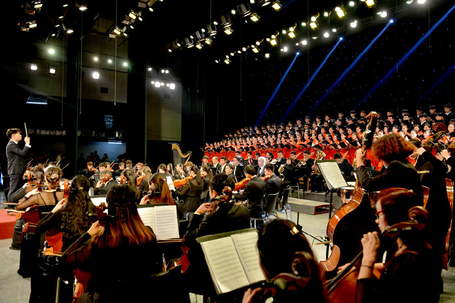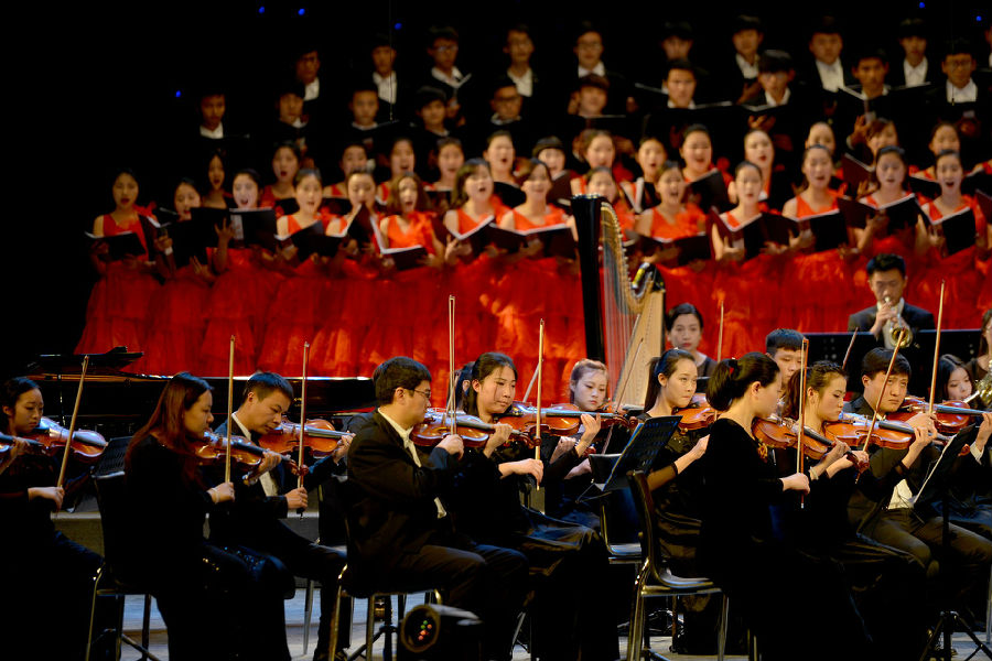 明湖如镜照映腾飞雄姿,琴瑟共鸣演绎和谐乐章。12月30日晚,2015“唱响赣师”交响合唱新年音乐会在聂耳剧场浓情上演,在家校领导孙弘安、王太钧、曾泽鑫、胡龙华、吴剑波、幸跃凌及千余名师生共同观看演出。