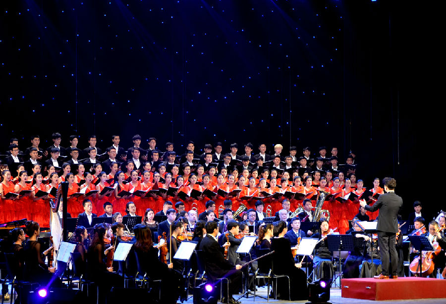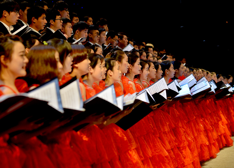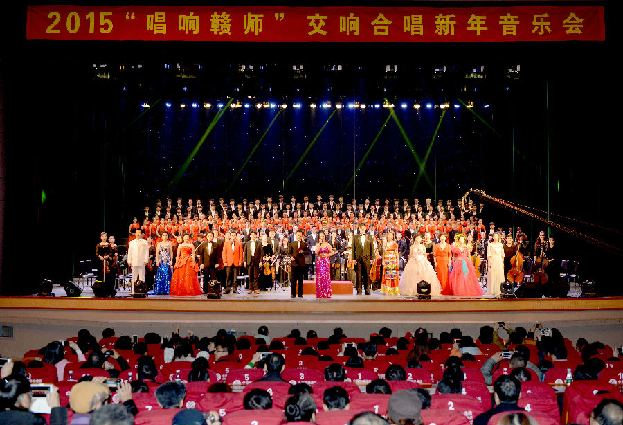最后,2015“唱响赣师”合唱交响新年音乐会在坚定有力的《走向复兴》的歌声中圆满落幕。