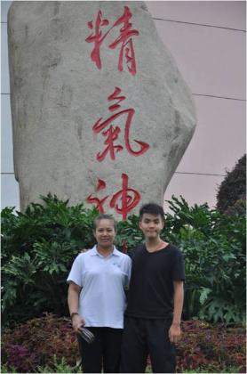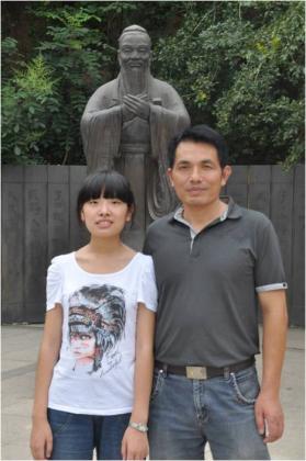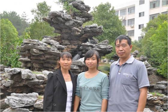 她来自贵州,与爸爸妈妈在赣师合影留念