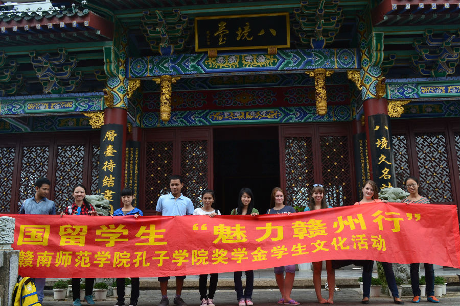 9月30日,我校开展孔子学院奖学金学生“魅力赣州行”主题文化活动,组织学生到八境台、郁孤台、文庙、古浮桥、宋城墙等市内著名景点、古迹进行文化体验与考察。来自意大利、柬埔寨的五名孔子学院奖学金留学生及来自俄罗斯、乌克兰的留学交换生兴致勃勃地参加了活动。