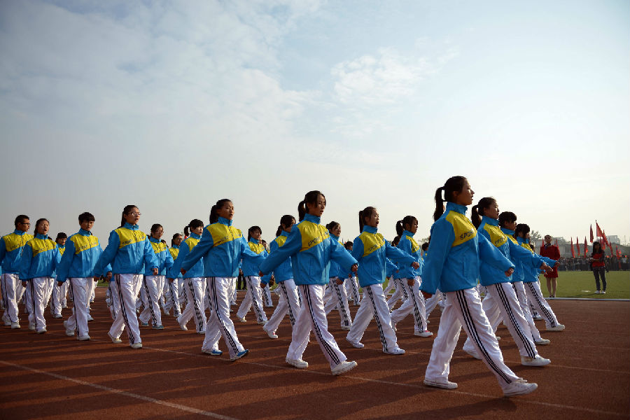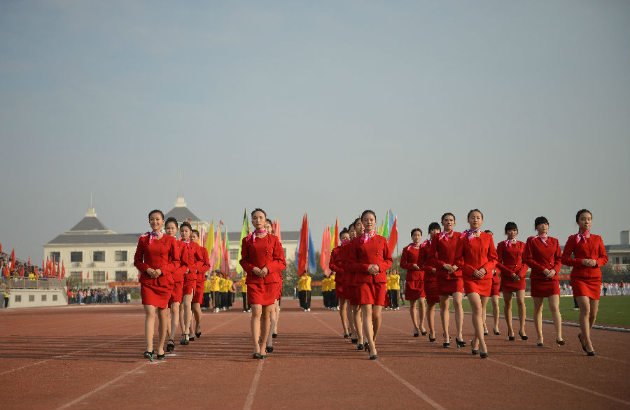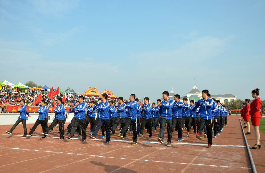 上午8时,开幕式正式开始。伴随着激昂的《运动员进行曲》,15个教学学院代表队方阵踏着整齐的步伐经过主席台,全场观众报以热烈的掌声。