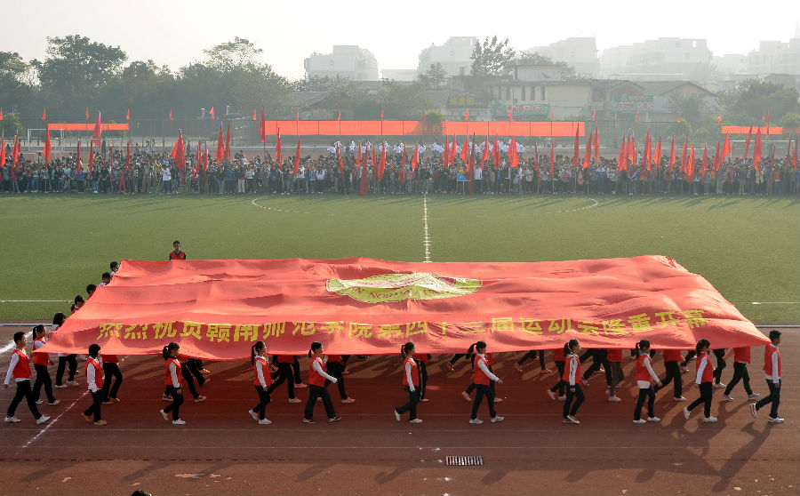 9时许,院长、党委副书记曾志刚宣布赣南师范学院第43届运动会开幕。顿时,运动场内鞭炮齐鸣,热烈的掌声经久不息,把整个开幕式现场气氛推向高潮。
