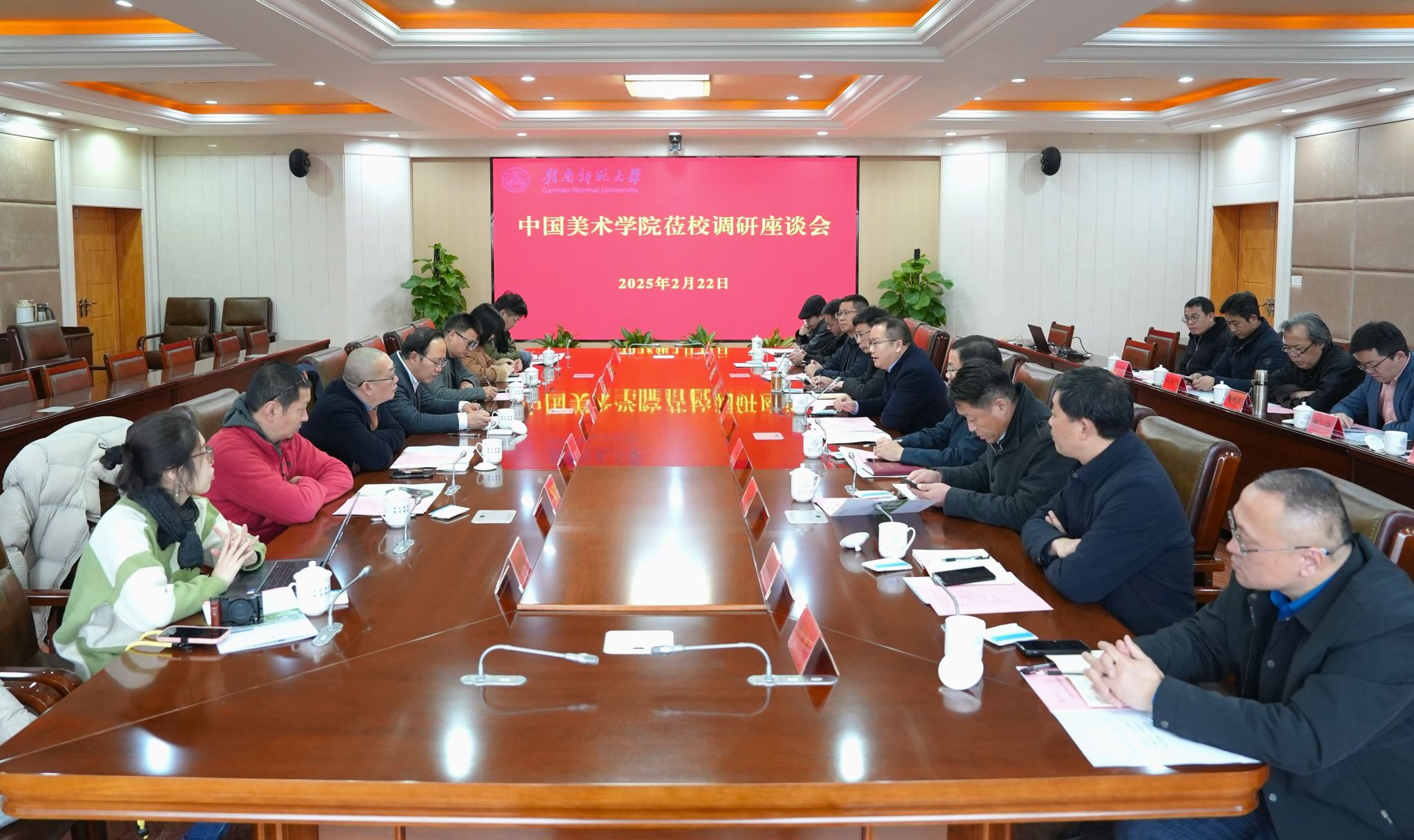 近日,中国美术学院党委书记金一斌一行来学校调研交流,校党委常委、副校长邱小云,校党委常委、副校长兼组织部部长肖笃森,党委常委、纪委书记、省监委驻校监察专员黄保文接待来宾。中国美术学院发展规划处、人事处、人才办、社会合作处、手工艺术学院文物保护与修复系、视觉艺术学院以及学校党委(校长)办公室、发展规划处、人事处、科研处、美术与设计学院、历史文化与旅游学院等部门相关负责同志参加座谈。